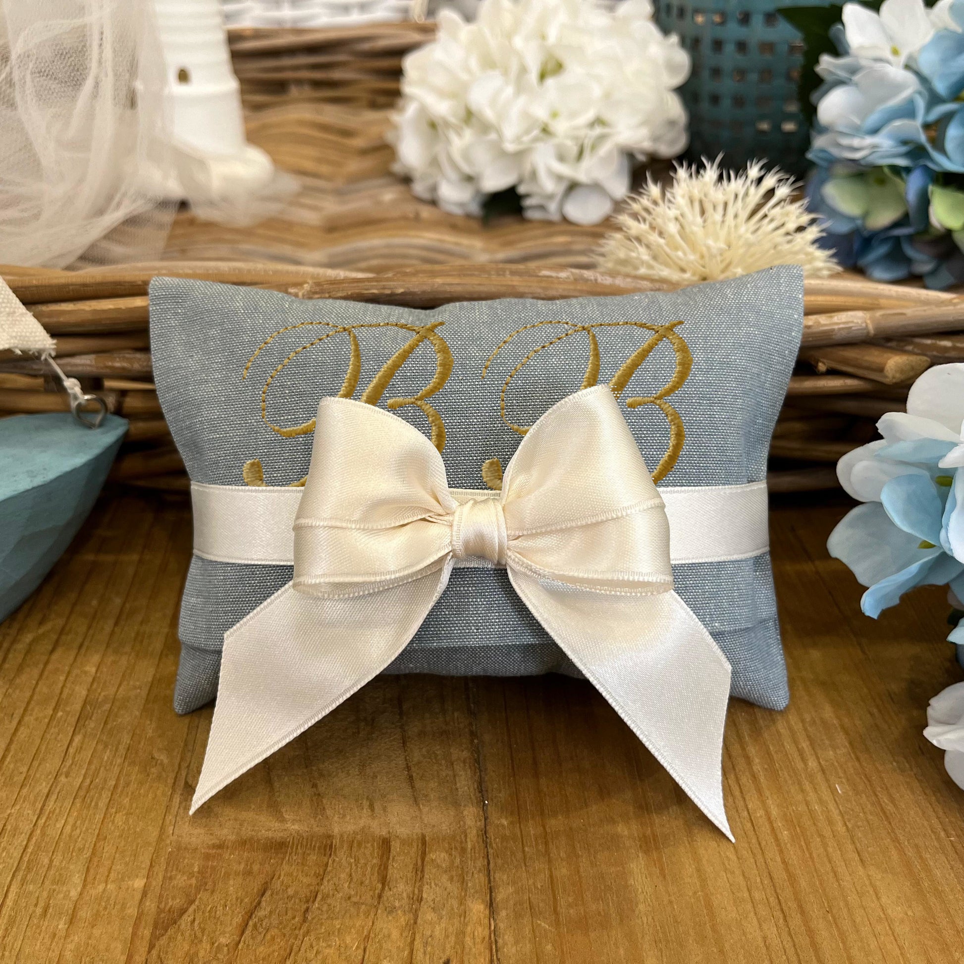 Bustina portaconfetti con personalizzazione ricamata, realizzata in tessuto tinta unita avio, dimensioni 14x11 cm, composizione 100% cotone. Il sacchetto viene venduto come in foto, con nastro in doppio raso da 2,5 cm e 1,5 cm, 9 confetti alla mandorla preincartati monodose e il bigliettino. È possibile scegliere il colore del nastro e il colore del ricamo tra le varianti proposte. Durante l'ordine, si prega di inserire nelle note le iniziali (da 1 a 3) o il nome da ricamare e i dettagli dell'evento da stampare sul biglietto (evento, nomi, data).