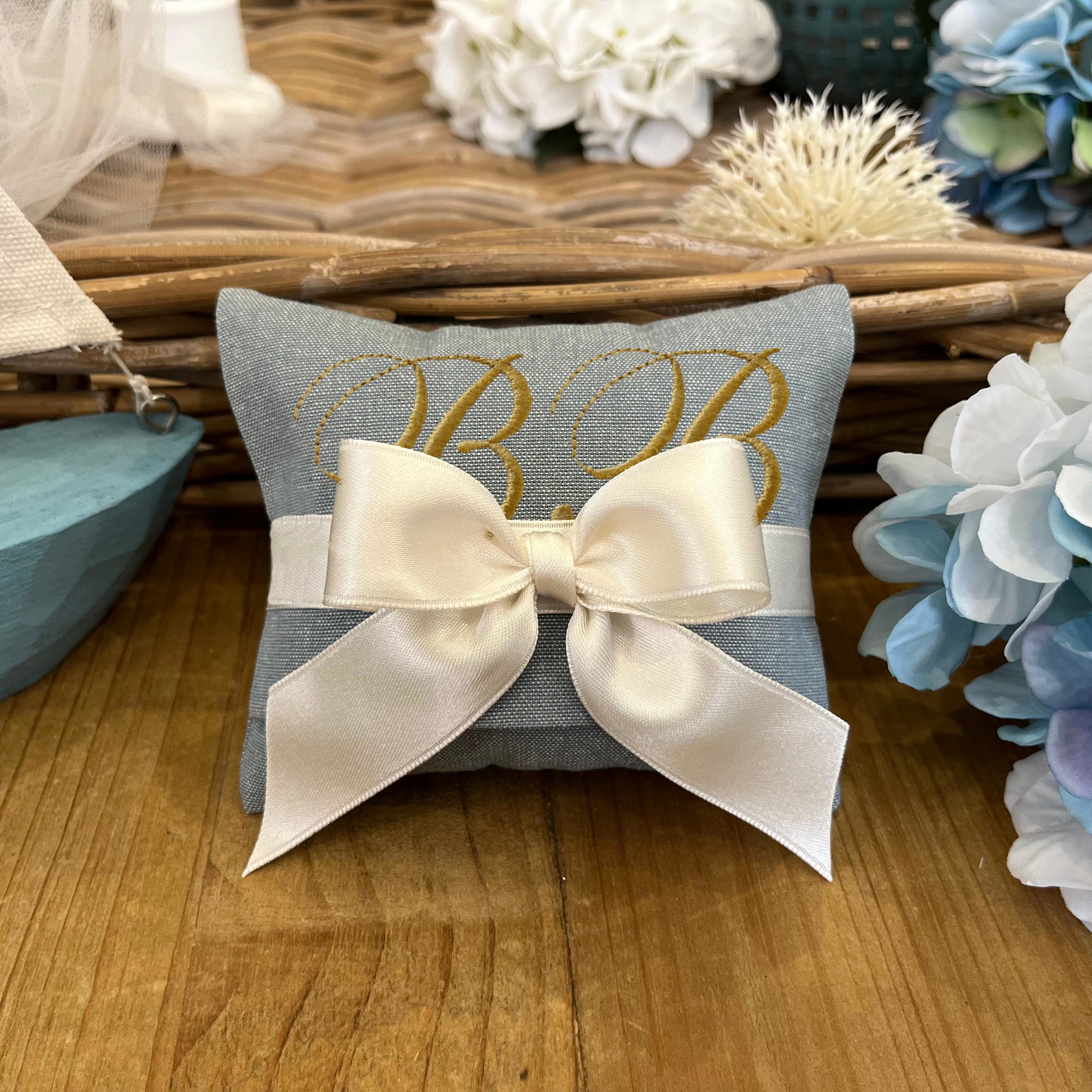 Bustina portaconfetti con personalizzazione ricamata, realizzata in tessuto tinta unita avio, dimensioni 12x11 cm, composizione 100% cotone. Il sacchetto viene venduto come in foto, con nastro in doppio raso da 2,5 cm e 1,5 cm, 7 confetti alla mandorla preincartati monodose e il bigliettino. È possibile scegliere il colore del nastro e il colore del ricamo tra le varianti proposte. Durante l'ordine, si prega di inserire nelle note le iniziali (da 1 a 3) o il nome da ricamare e i dettagli dell'evento da stampare sul biglietto (evento, nomi, data).