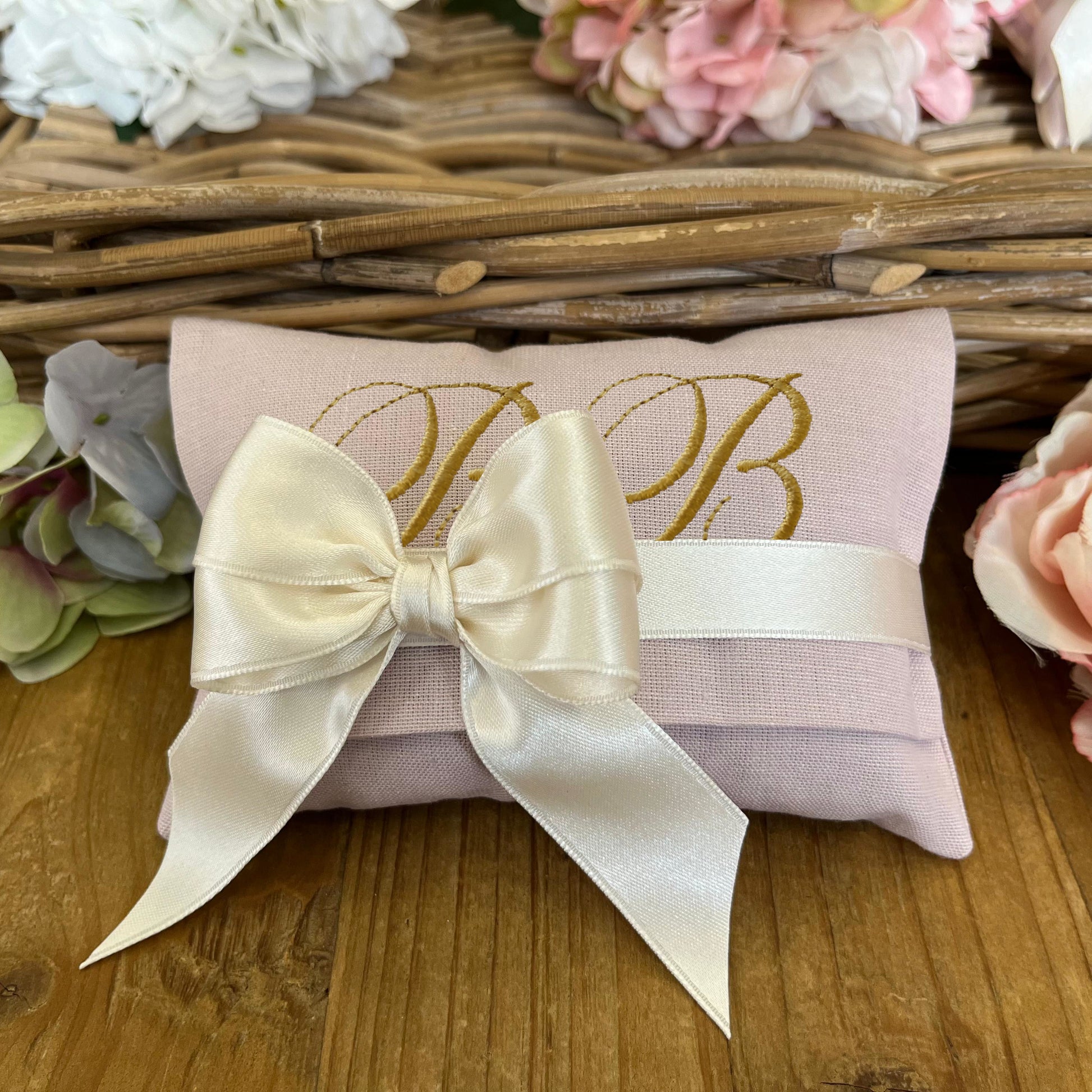 Bustina portaconfetti con personalizzazione ricamata, realizzata in tessuto tinta unita lilla, dimensioni 14x11 cm, composizione 100% cotone. Il sacchetto viene venduto come in foto, con nastro in doppio raso da 2,5 cm e 1,5 cm, 9 confetti alla mandorla preincartati monodose e il bigliettino. È possibile scegliere il colore del nastro e il colore del ricamo tra le varianti proposte. Durante l'ordine, si prega di inserire nelle note le iniziali (da 1 a 3) o il nome da ricamare e i dettagli dell'evento da stampare sul biglietto (evento, nomi, data).