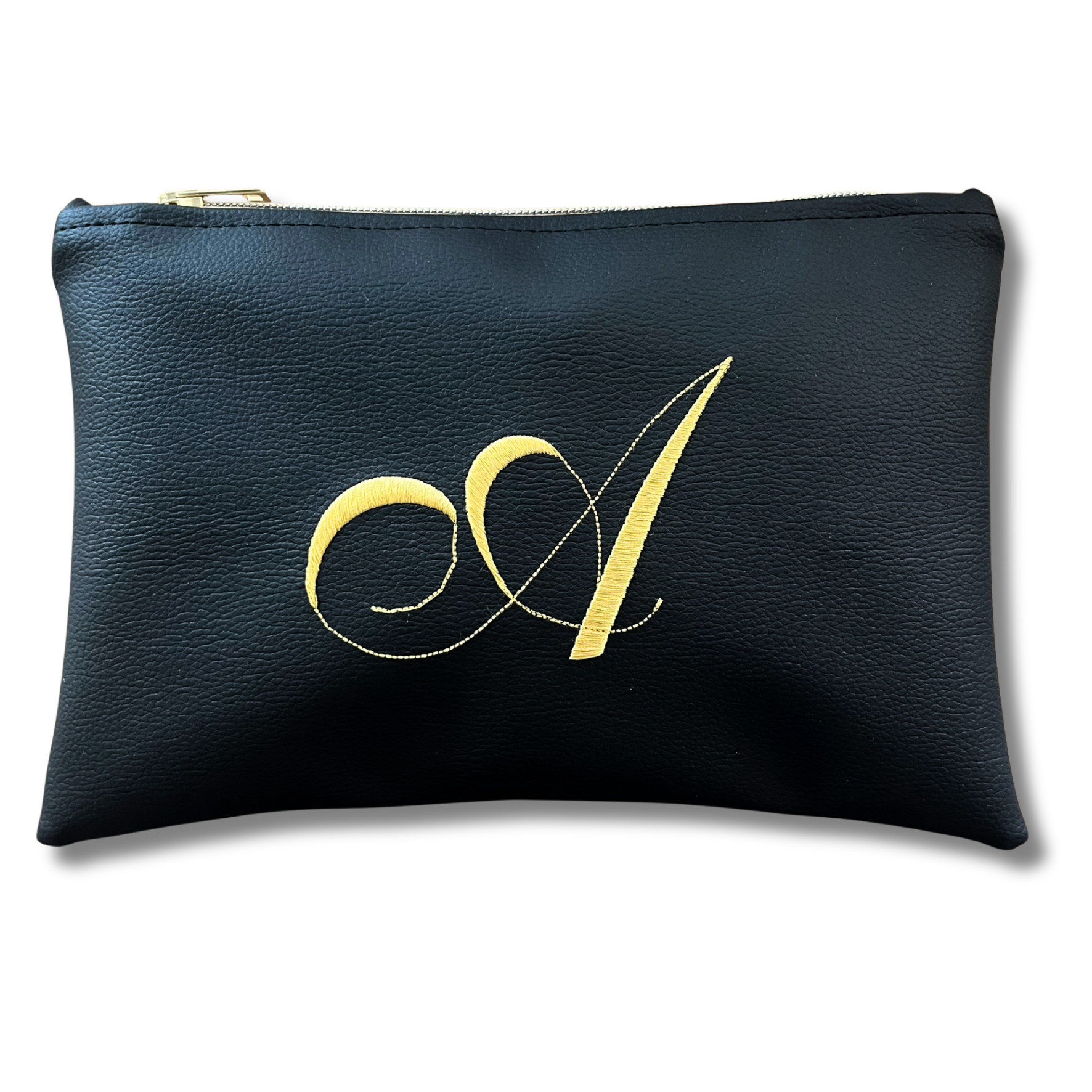 Pochette personalizzata in similpelle nera ricamo font inglese mod. regular