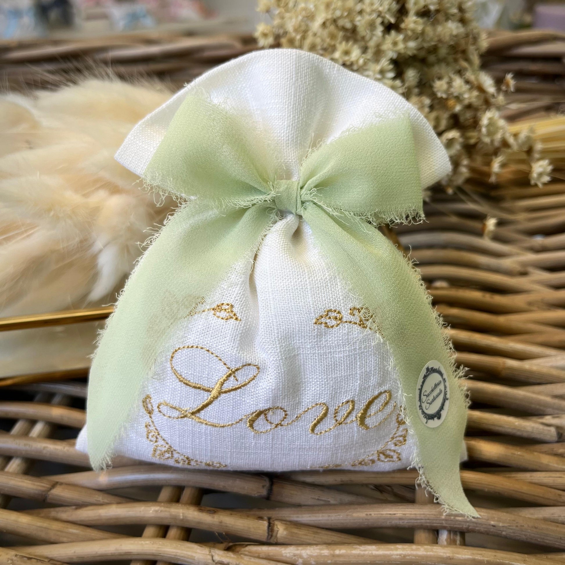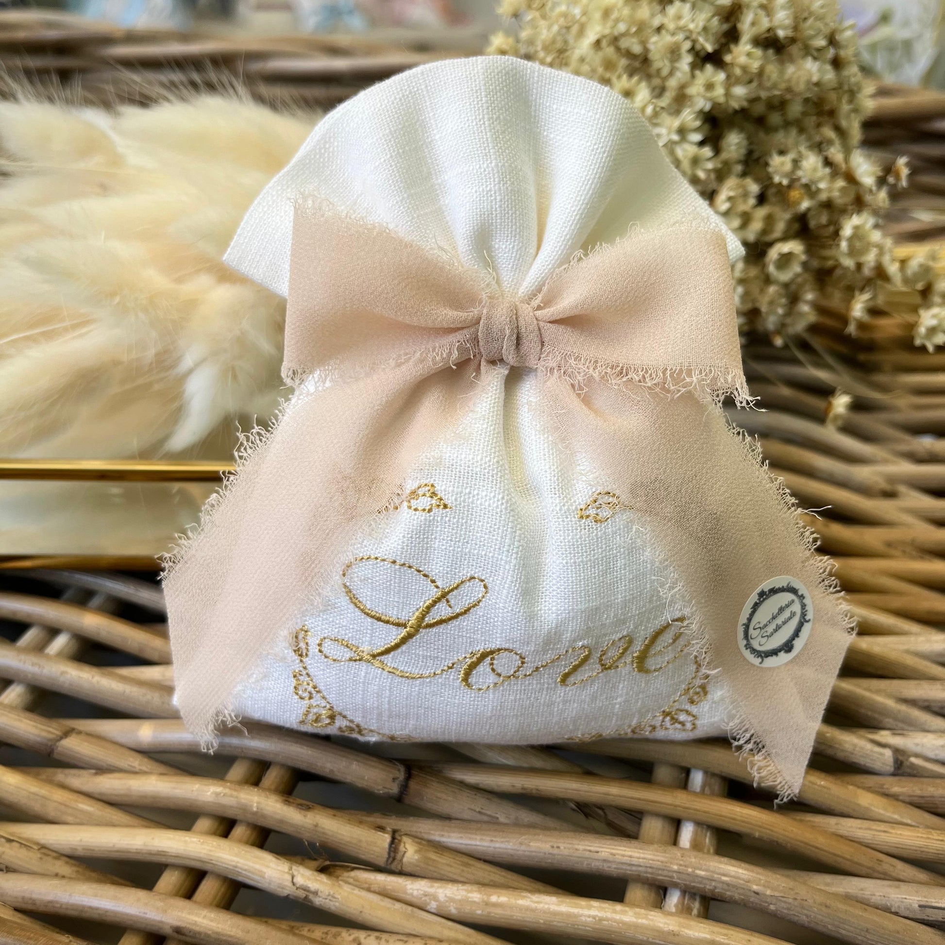 Sacchetto portaconfetti lino e viscosa avorio personalizzato mod. medio