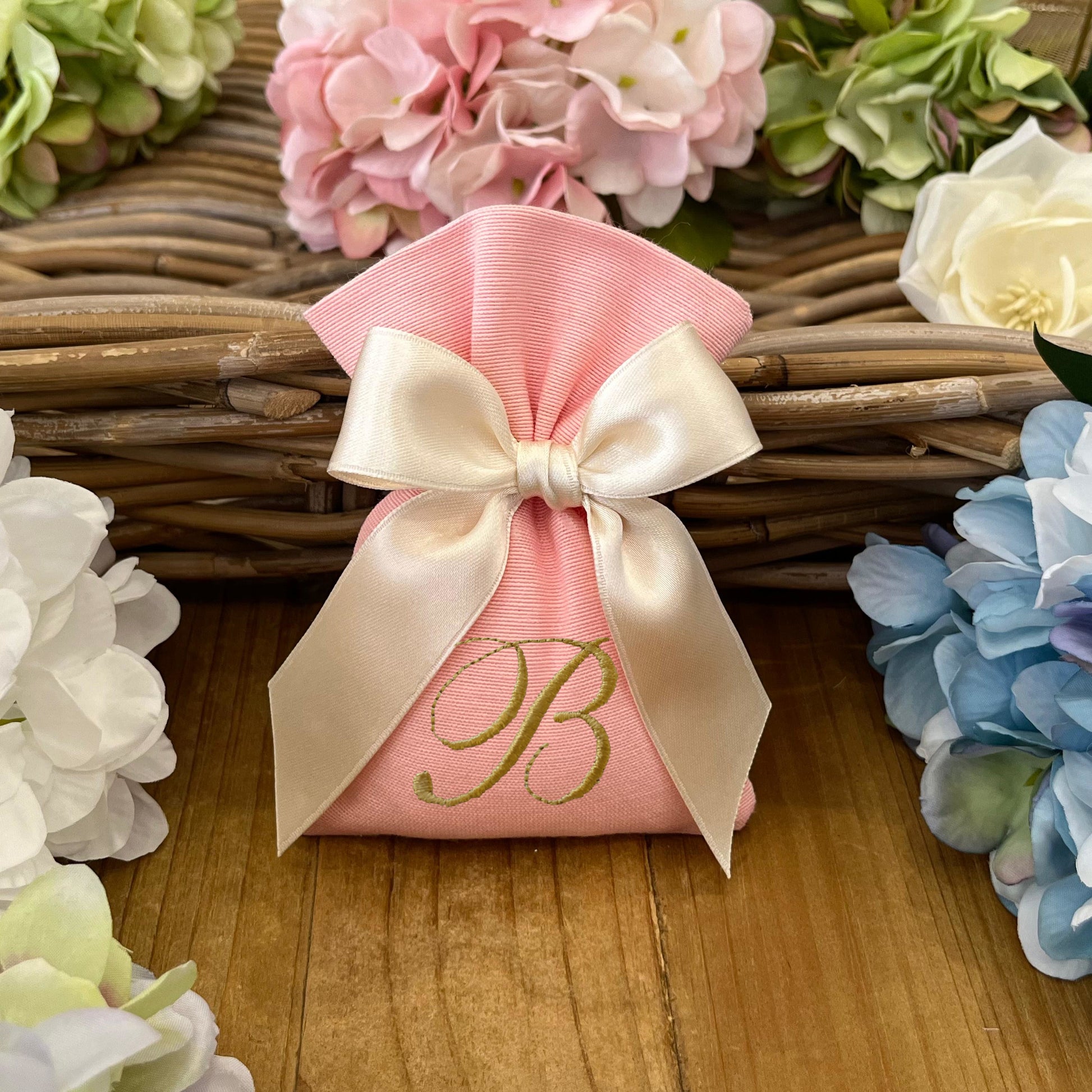 Sacchetto portaconfetti rosa peonia personalizzato mod. piccolo collezione Palette